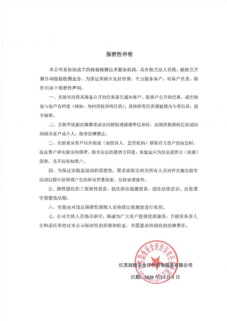 公正性及保密性申明